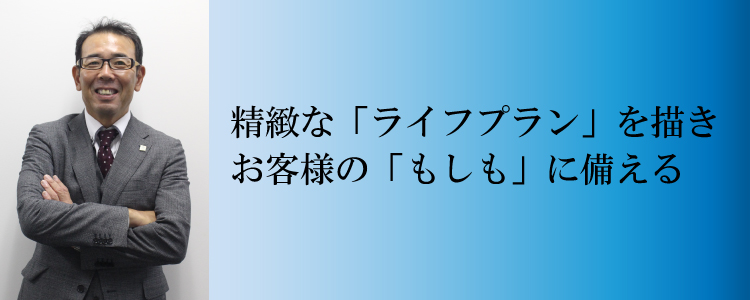 保険のプロとしてライフプランの作成にはこだわっており、精緻かつ納得感のあるライフプランニングとそれに基づく保険提案は多くのお客様にご好評いただいている。